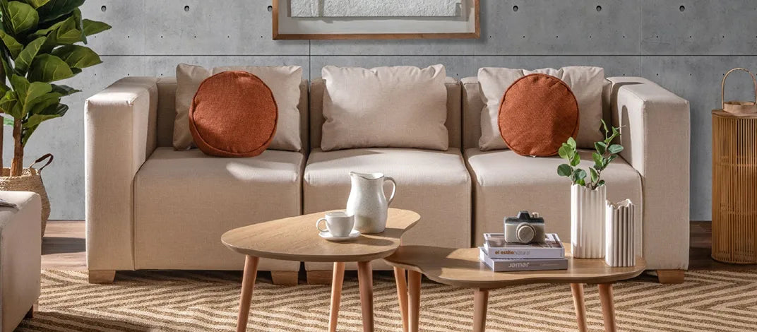 Tapizado en un elegante tono taupe con patas en madera expuesta, su diseño transmite suavidad y equilibrio. Cada módulo ofrece amplitud y respaldo acogedor, mientras la butaca y el puff complementan la experiencia con versatilidad y confort, creando un espacio pensado para relajarte y disfrutar cada momento en casa.