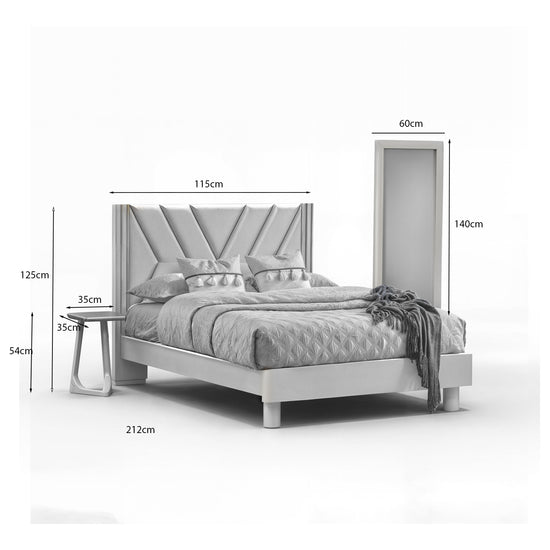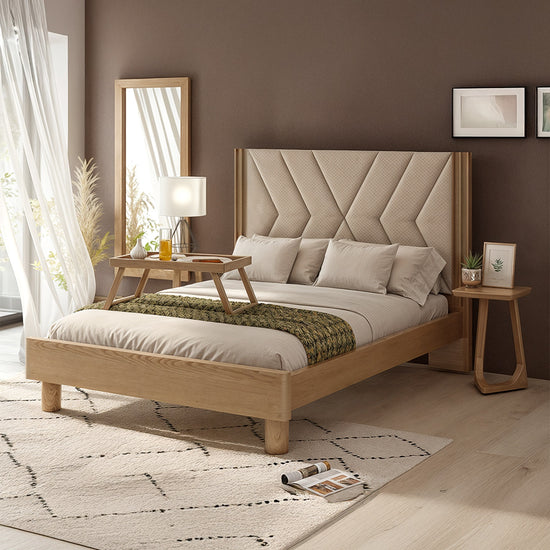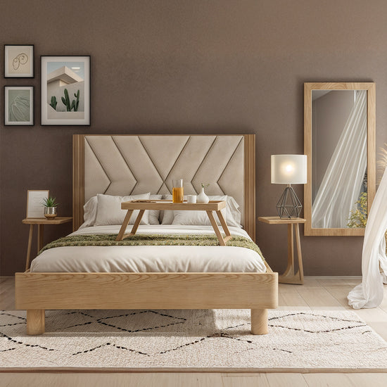 La Alcoba Artemisa es perfecta para crear un ambiente acogedor y moderno. Su cabecero tapizado en tela Eurolino con módulos acolchados, de fácil limpieza, estructura elaborada en madera de roble garantiza durabilidad y belleza natural, además su acabado en pintura poliuretano le brinda una alta durabilidad. Incluye un nocheros que aporta ligereza visual, un marco de espejo en madera a juego que amplía y realza el espacio.