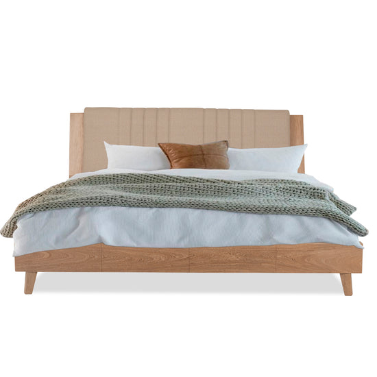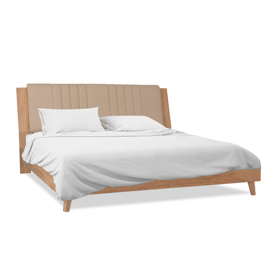El diseño de la Alcoba King Piero en Eurolino Marfil Natural aporta juventud y frescura a cualquier habitación, ideal para jóvenes y adultos por igual. Su cabecero con un audaz diseño de figuras geométricas irregulares y un marco robusto añaden volumen y elegancia al espacio. Tapizado en Eurolino para facilitar la limpieza, te permite disfrutar de momentos sin preocupaciones. Además, cuenta con nocheros flotantes que añaden conveniencia y estilo. La estructura de roble garantiza durabilidad y resistencia, mientras que las texturas protectoras del Eurolino aseguran una limpieza sencilla y una larga vida útil del mueble.