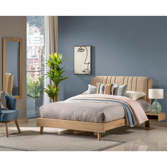Con un toque juvenil y fresco, la Alcoba Doble 1.20 Piero es perfecta para jóvenes y adultos. Su cabecero destaca con un patrón de figuras geométricas, mientras que el tapizado en eurolino ofrece durabilidad y fácil limpieza. ¡Completa tu espacio con estilo y funcionalidad!