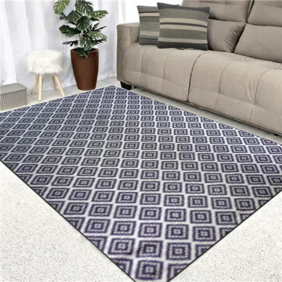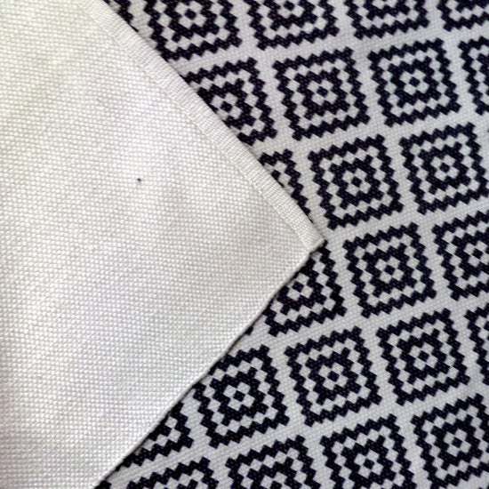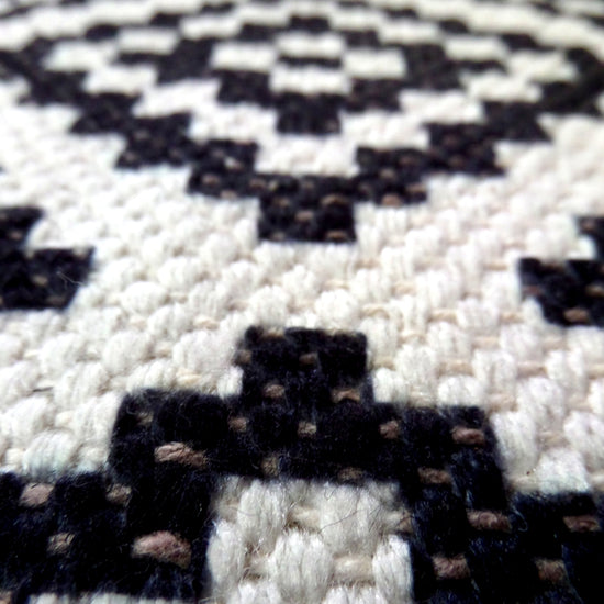 Renueva tu hogar con nuestra alfombra de diseño geométrico en tonos beige y negro. Esta pieza presenta un patrón repetitivo de diamantes y formas triangulares entrelazadas, creando un efecto visual moderno y contrastante. La disposición regular de los motivos geométricos da a la alfombra un aspecto ordenado y contemporáneo, ideal para complementar cualquier estilo de decoración minimalista.