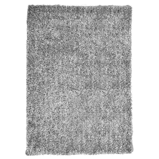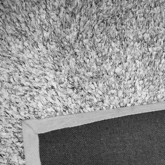 Alfombra con hilos y cintas en una combinación de tonos Blancos y toque Negro, con volumen y textura suave agradable al tacto, brindando una sensación de confort. Ideal para los espacios de tu hogar como Salas, Dormitorios, Estudio y Comedores.