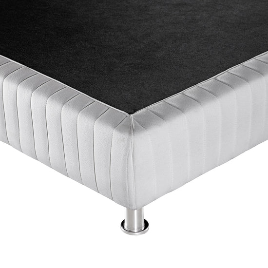 La Base Cama Doble Luxury Blanco brinda durabilidad gracias a sus materiales de calidad, elaborada en madera y revestida con tela Jackard en tono blanco, con patas fabricadas en acero cromado.