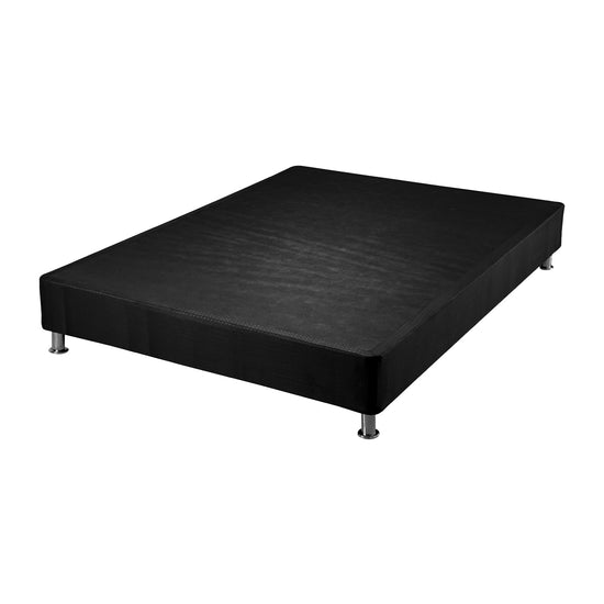 La base Cama Doble New Zabra para colchón doble tiene dimensiones de 1.40x1.90 metros y está fabricada con madera certificada. Está cubierta con tela tipo Satín de color negro y cuenta con patas de acero cromado para mayor estabilidad y resistencia.