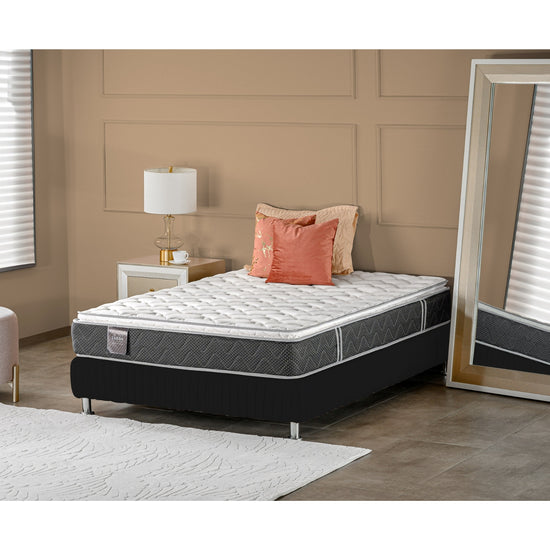 La Cama Doble Oxford Plus, es una plataforma diseñada para colchones de tamaño 1.40x1.90 m, está fabricada con madera certificada y cubierta con una tela de tono Gris Plomo. Además, cuenta con patas de acero cromado para mayor durabilidad y resistencia.