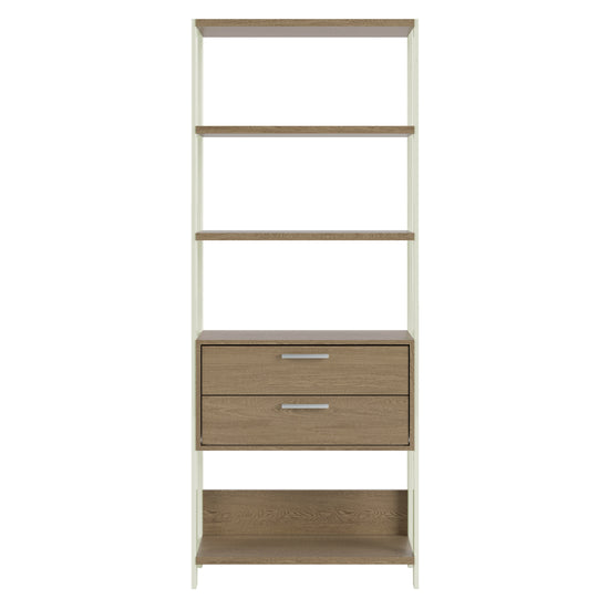 La Biblioteca Dallas, de tonos Off White y Natural, con dimensiones de 73X185X32, está fabricada en tablero MDP de pino, proporcionando espacios ideales para organizar libros, objetos de colección y elementos decorativos. Además, viene acompañada del servicio gratuito de transporte y montaje.