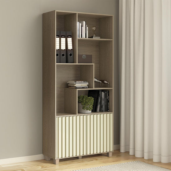 Biblioteca elaborado en madera industrializada de pino MDF y acabado en pintura UV que garantiza su durabilidad y resistencia. Con bisagras con amortiguador, esta biblioteca moderna, que cuenta con 2 puertas, añade un toque sofisticado a cualquier espacio. Organiza y exhibe tus colecciones, así como tu decoración, con estilo. Transporte y Armado Gratis