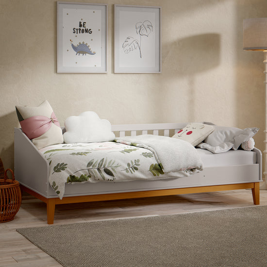 Descubre la cama infantil Tivoly, diseñada para ofrecer máxima versatilidad con su funcionalidad de sofá cama. Su sólida base de madera asegura durabilidad y resistencia, mientras que el acabado con pintura UV protege contra los rayos solares, garantizando una larga vida útil y una apariencia impecable. Este mueble no solo es práctico, sino que también añade un toque de estilo a cualquier habitación infantil. ¡Ideal para combinar funcionalidad y elegancia en el mismo espacio!