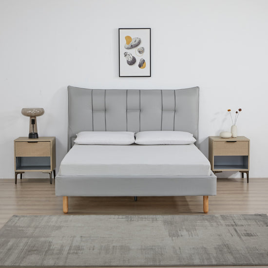 Moderna y funcional, la Cama Doble Kenzo Plomo realza el dormitorio con su respaldo segmentado verticalmente. Su tapizado en eurocuero facilita la limpieza y protege contra derrames accidentales, perfecta para un estilo de vida dinámico y elegante.