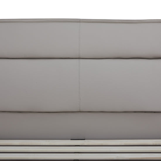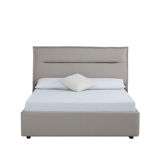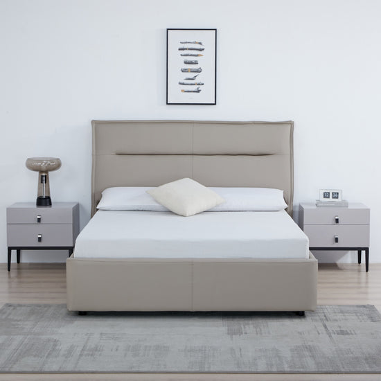 La Cama Doble Luka Beige combina estilo moderno y funcionalidad. Su respaldo acolchado con diseño horizontal añade presencia visual, mientras el tapizado en eurocuero es resistente a líquidos y fácil de limpiar. Perfecta para un dormitorio práctico y elegante.