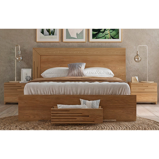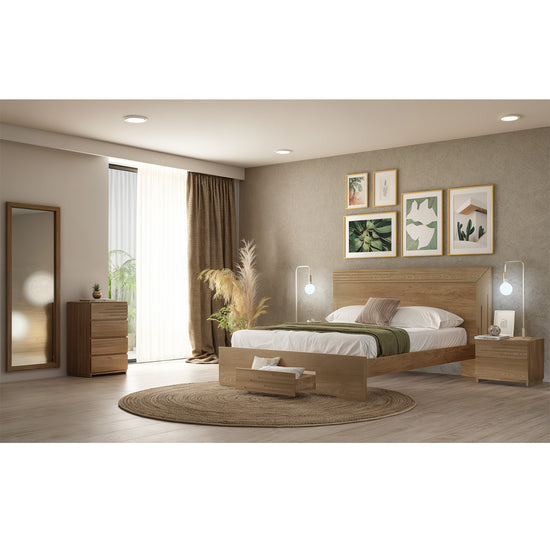 La cama Doble Oslo es la elección perfecta para quienes buscan un estilo contemporáneo con la calidez de la madera natural. Su diseño limpio y minimalista, combinado con una funcional gaveta en el piecero, hace que esta cama sea una opción práctica y sofisticada para optimizar tu dormitorio.