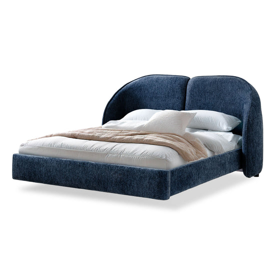 La Cama Doble Sienna en color Navy es una declaración de sofisticación y modernidad. Su diseño bold con respaldo bajo y acolchado ofrece una sensación de comodidad absoluta, ideal para momentos de relajación. La estructura chunky aporta solidez sin perder fluidez visual, mientras que su tapizado en tono navy añade profundidad y un aire contemporáneo al dormitorio. Una opción perfecta para quienes buscan una cama con estilo distintivo y versátil.