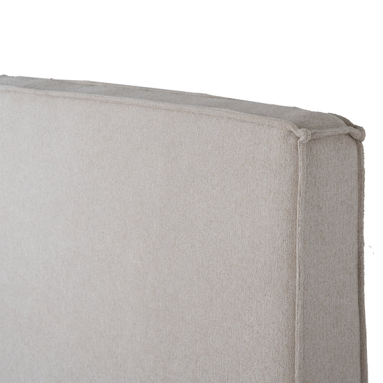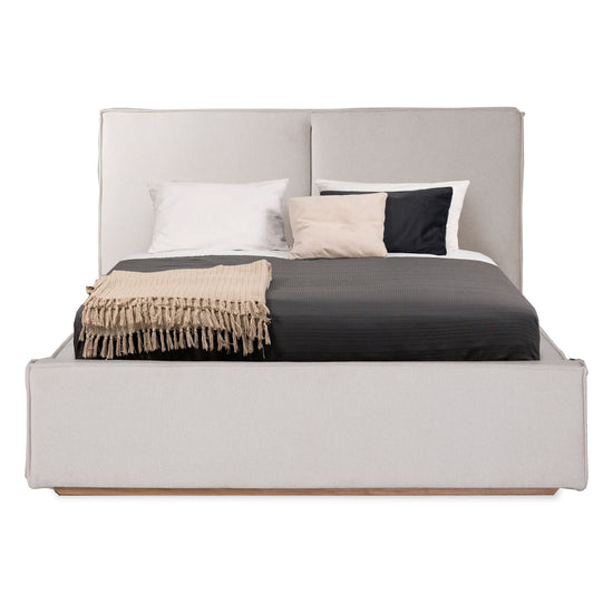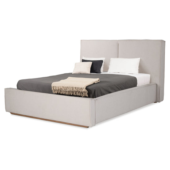 La cama Tanner presenta una estructura sólida y resistente, completamente tapizada en tela lino de alta durabilidad, ideal para el uso diario. Su diseño de cabecera acolchada ofrece soporte ergonómico y su base aporta un toque moderno y funcional.