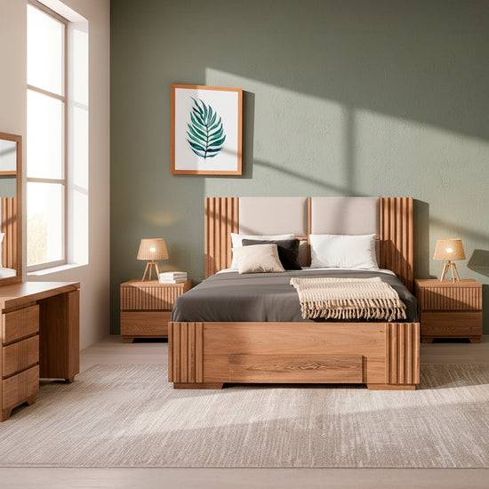 La Cama Doble Texas combina elegancia y practicidad en un diseño contemporáneo. Tapizada en exclusiva tela Eurolino de fácil limpieza, su cabecera con detalles geométricos y laterales acanalados aportan un estilo sofisticado al dormitorio. Cuenta con un práctico cajón frontal en el piecero para almacenamiento adicional, ideal para optimizar el espacio sin perder estilo.