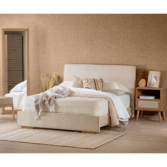 Esta cama tapizada en tela suave al tacto es la elección perfecta para quienes buscan elegancia y comodidad en su dormitorio. Su diseño minimalista con líneas limpias la convierte en una pieza versátil que se adapta a cualquier estilo de decoración, desde lo moderno hasta lo más tradicional. El cabecero acolchado añade un toque adicional de confort, ideal para aquellos momentos de descanso o lectura.