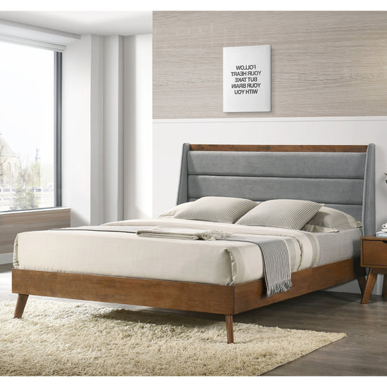 Convierte tu habitación en un refugio de sofisticación con la cama king Anahí gris. Su amplio cabecero tapizado, con elegante diseño de paneles verticales, ofrece no solo soporte cómodo para descansar, sino también un impacto visual que realza cualquier espacio. La estructura robusta en madera oscura y las patas de inspiración retro completan este diseño, pensado para quienes desean máximo confort y estilo en su dormitorio.
