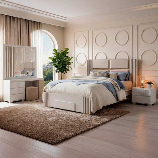 La cama King Texas combina elegancia y practicidad en un diseño contemporáneo. Tapizada en exclusiva tela Eurolino de fácil limpieza, su cabecera con detalles geométricos y laterales acanalados aportan un estilo sofisticado al dormitorio. Cuenta con un práctico cajón frontal en el piecero para almacenamiento adicional, ideal para optimizar el espacio sin perder estilo.