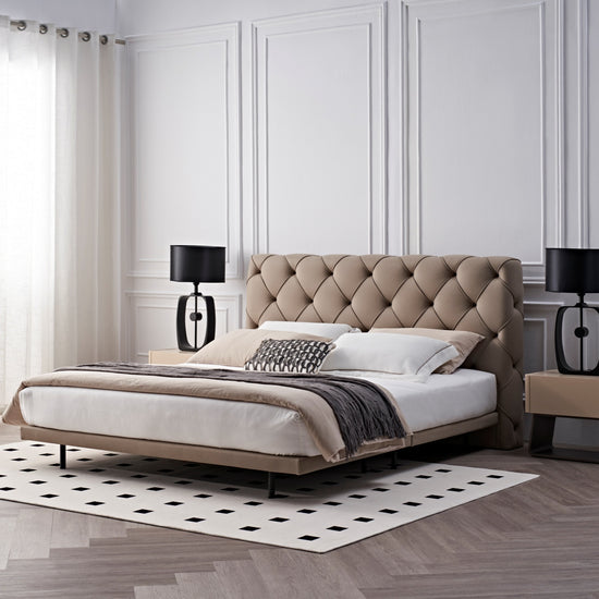 Imponente y refinada, la Cama King Turin Beige ofrece una cabecera con diseño capitonado que añade textura y estilo. Su formato amplio y silueta limpia la convierten en la pieza ideal para habitaciones que buscan distinción y confort visual.