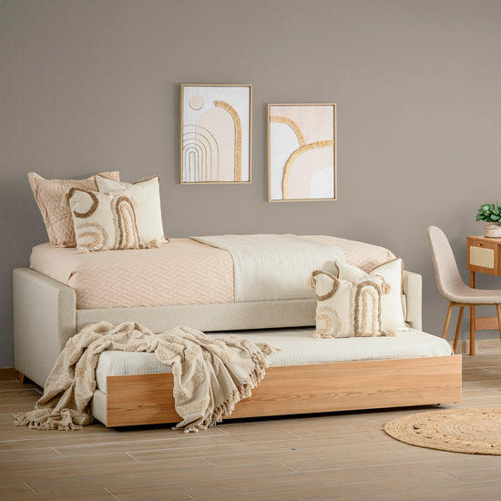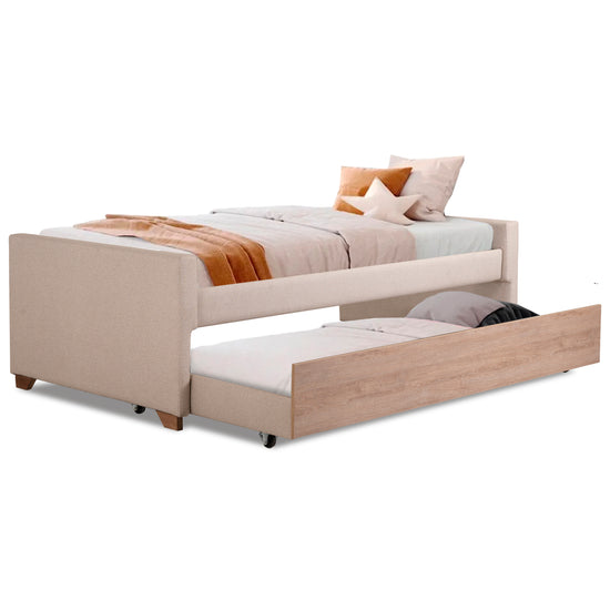 Cama Nido elegante, diseñada para optimizar tu espacio. Tapizada en tela Eurolino, fácil de limpiar, resistente a líquidos y peladuras, lo cual garantiza una alta durabilidad. La tela Eurolino ofrece una serie de ventajas como: texturas que disminuyen el daño, cero adherencia de fibras, 100% impermeable, fácil limpieza, previene malos olores.