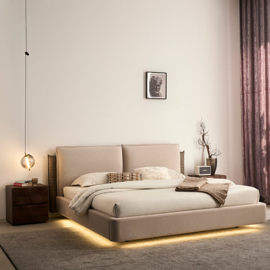 La Cama Queen Lincon Velvet Beige combina líneas elegantes con una textura aterciopelada que inspira descanso y sofisticación. Su cabecero acolchado de diseño recto y proporciones generosas aporta serenidad al dormitorio. Tapizada en velvet beige, transmite suavidad visual y se integra fácilmente en estilos modernos y naturales. Incorpora iluminación LED en la base, con un sensor de luz integrado que permite encenderla de forma automática durante la noche o en las madrugadas, ofreciendo comodidad y practicidad sin perder estilo.