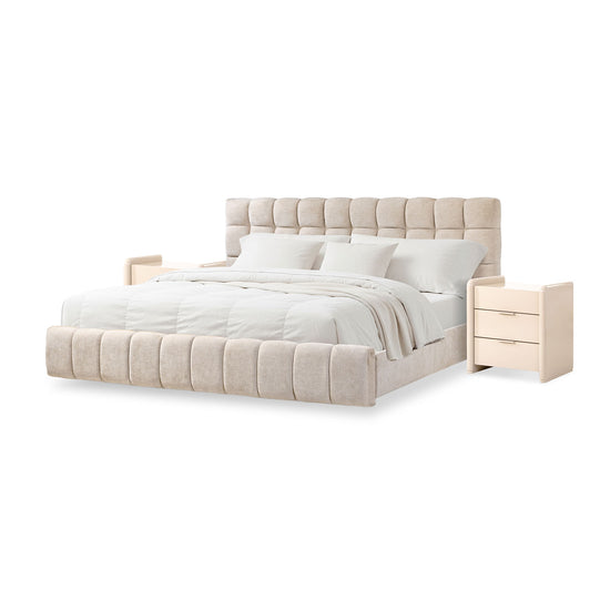 La cama Queen Oklam transforma el dormitorio con sus líneas elegantes de inspiración italiana. Su cabecero y piecero, realzados por un capitoné de gran escala, crean una presencia imponente y sofisticada. Además, incorpora dos gavetas ocultas en el piecero, maximizando el almacenamiento sin renunciar al estilo.