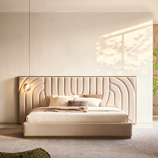 Disfruta de un refugio de suavidad y elegancia con la Cama Queen Sharon en velvet crema. Su cabecero acolchado con líneas geométricas y su tela velvet suave al tacto crean un ambiente cálido y sofisticado, perfecto para renovar tu dormitorio con estilo y confort superior.