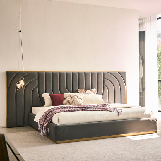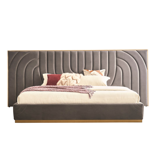 Elegancia y tacto sedoso se unen en la Cama Queen Sharon velvet gris oscuro. Su cabecero acolchado con detalles geométricos y la tela suave al tacto transforman tu habitación en un santuario moderno, ideal para quienes buscan estilo y confort en cada detalle.