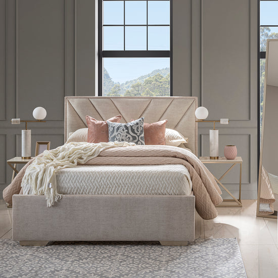 Experimenta el lujo y la comodidad con nuestra Cama Queen Vallarta Marfil, Champaña. Fabricada con madera de alta calidad para ofrecer resistencia y durabilidad excepcionales, su espaldar acolchado añade un toque de elegancia y eleva el nivel de confort durante tus horas de descanso. Esta cama combina estilo y funcionalidad para crear el refugio perfecto en tu dormitorio. ¡Descansa en el lujo que mereces con la Cama Queen Vallarta!