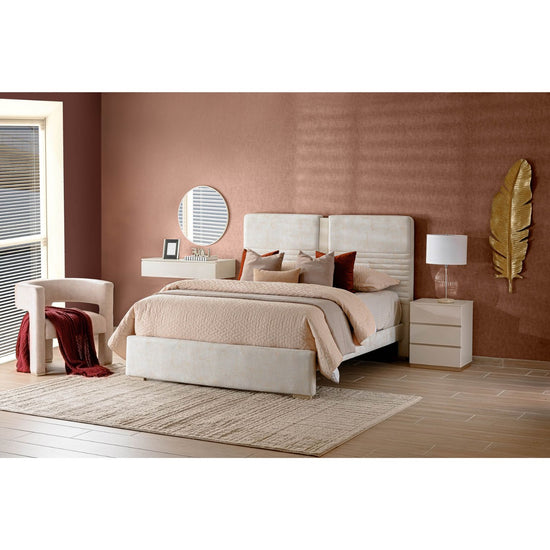 La cama Moratti es el equilibrio perfecto entre lujo y comodidad. Tapizada en una tela velvet suave al tacto, ofreciendo una experiencia única de confort. Su diseño moderno y minimalista, combinado con detalles en el cabecero la convierten en el centro de atención en cualquier dormitorio. Ideal para quienes buscan un estilo contemporáneo con un toque sofisticado, la cama Moratti es la opción perfecta para transformar tu espacio de descanso en un lugar elegante y acogedor