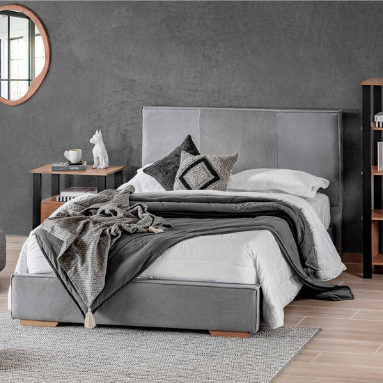 Diseño moderno con un toque juvenil. La cama Tokyo está tapizada en una tela suave al tacto de alta durabilidad, ideal para el uso diario. Su estilo minimalista y base en madera natural la convierten en una opción funcional y con mucho estilo para habitaciones contemporáneas.