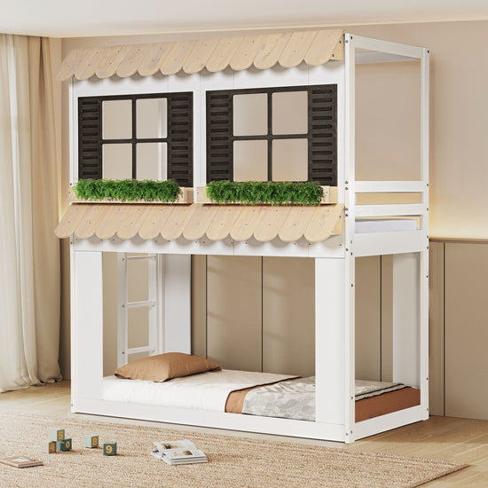 El Camarote 0.90 Sunny ofrece un diseño encantador de casita, ideal para crear un espacio acogedor y lleno de fantasía en la habitación de tus pequeños. Con su estructura en madera maciza de pino y acabados en Blanco, Off White y Gris, es resistente y segura. Las ventanas decorativas y el techo estilo teja completan su toque lúdico. Perfecta para optimizar el espacio y fomentar la imaginación de los niños. ¡Un refugio único para descansar y jugar!