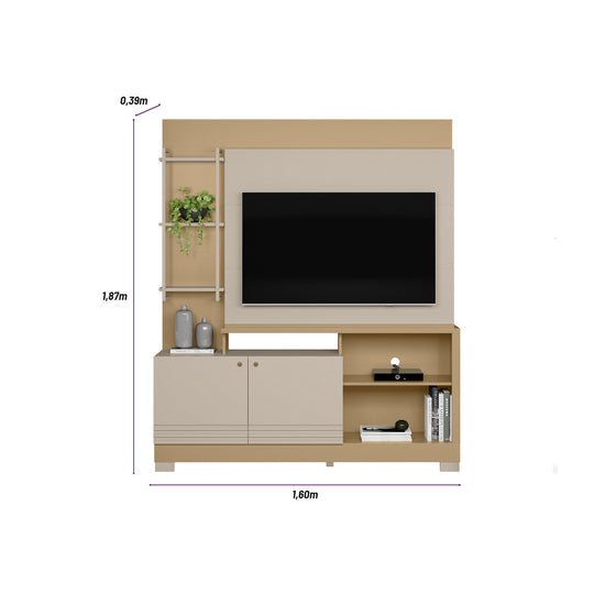 Trasforma tu sala con este elegante centro de entretenimiento. Diseñado para televisores de hasta 50", su estructura combina madera y MDF, ofreciendo durabilidad y estilo. Cuenta con manijas de cuero sintético que aportan un detalle exclusivo, además de un amplio espacio de almacenamiento con compartimentos abiertos y cerrados para organizar tus dispositivos, libros y elementos decorativos. Su diseño moderno y versátil lo convierte en la opción ideal para realzar cualquier sala de estar.