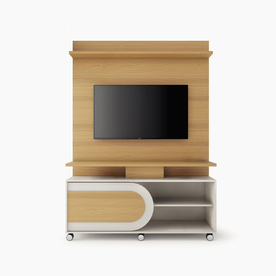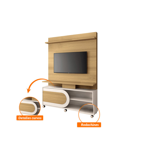 El Centro de Entretenimiento Orly tiene un diseño moderno y funcional, esta elaborado en madera industrializada de pino y cuenta con 1 puerta, 2 repisas y espacio para TV de hasta 55". Su acabado natural y off white aporta elegancia y estilo contemporáneo a cualquier sala.