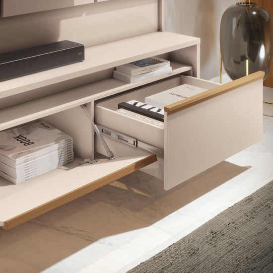 El Centro de Entretenimiento Smart está elaborado en Madera Industrializada de Pino con en pintura UV, que mantiene la pintura intacta sin perder el color en el tiempo. Cuenta 2 Gavetas con riel telescopico, una puerta abatible hidraulica, luz LED y nicos. Transforma tu sala de estar en un espacio elegante y funcional dandole armonia a tu hogar. Incluye Soporte de Tv.