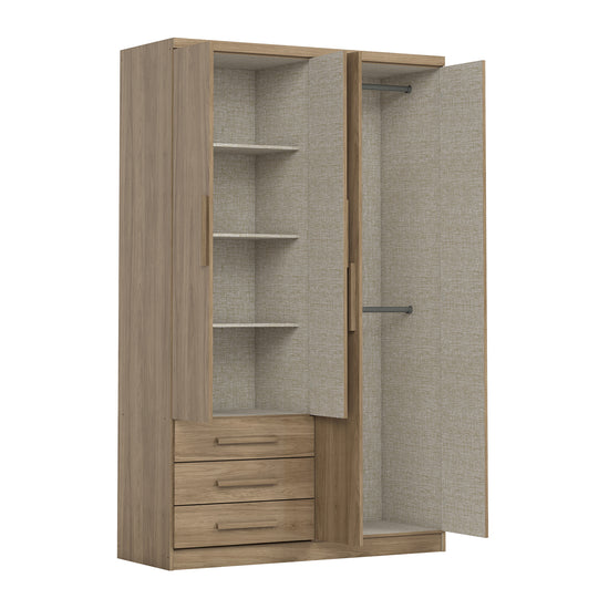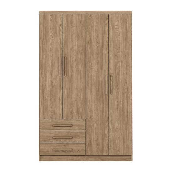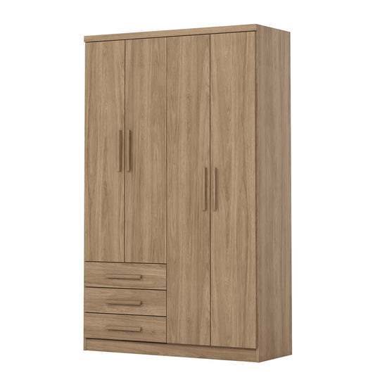 Ropero en madera industrializada de pino (MDF/MDP) con acabado de mayor calidad en pintura UV que mantiene la pintura intacta sin perder el color en el tiempo. Cuenta con 4 puertas, 3 gavetas, correderas metálicas y 2 percheros, este ropero ofrece organización sin comprometer el diseño. Detalles cuidadosamente elaborados,. Transporte y Armado Gratis