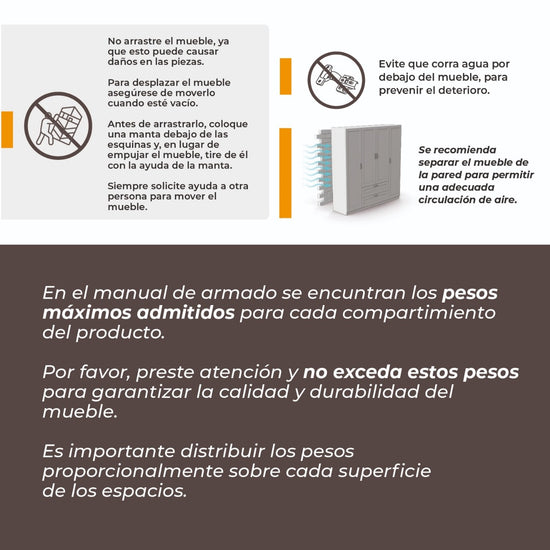 Explora nuestro Closet diseñado con elegancia y funcionalidad en mente. Fabricado con madera industrializada de pino de alta calidad (MDF/MDP), este ropero presenta un acabado excepcional gracias a su pintura UV de primera calidad. Este tratamiento garantiza que la pintura se mantenga intacta y el color perdure a lo largo del tiempo. Con seis puertas espaciosas, tres gavetas equipadas con rieles extensibles y tres percheros metálicos, nuestro ropero ofrece una solución de almacenamiento versátil y duradera para tu hogar. Transporte y Armado Gratis