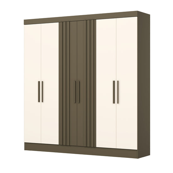Explora nuestro ropero diseñado con elegancia y funcionalidad en mente. Fabricado con madera industrializada de pino de alta calidad (MDF/MDP), este ropero presenta un acabado excepcional gracias a su pintura UV de primera calidad. Este tratamiento garantiza que la pintura se mantenga intacta y el color perdure a lo largo del tiempo. Con seis puertas espaciosas, tres gavetas equipadas con rieles extensibles y tres percheros metálicos, nuestro ropero ofrece una solución de almacenamiento versátil y duradera para tu hogar. Transporte y Armado Gratis