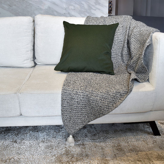 Cojin color olivia con textura suave, ideal para decorar tu hogar, listo para usar.