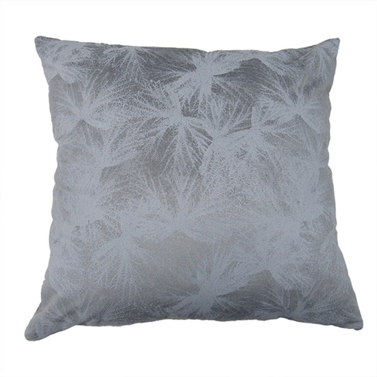 Cojin de color plata con textura suave y aterciopelada que lo hace ideal para la decoración del hogar, listo para usar.