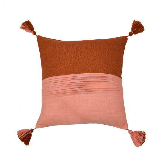 Cojín con diseño de dos tonos(Rosa/Terra). Ideal como elemento decorativo para el hogar. Listo para usar.