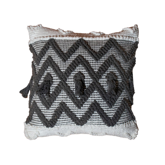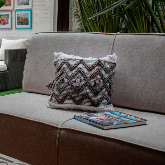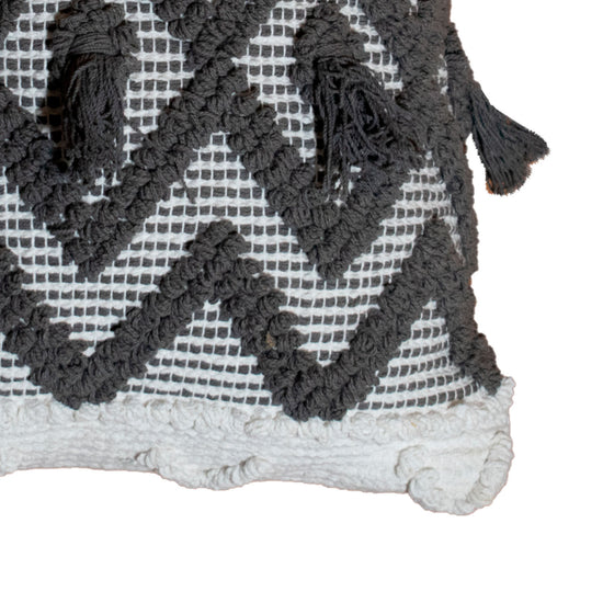 Cojín en colores blanco y gris, con patrón y colores que le dan un aspecto elegante y sofisticado, lo que lo convierte en una pieza interesante para la decoración del hogar o para realzar la estética de tus espacios, listo para su uso.