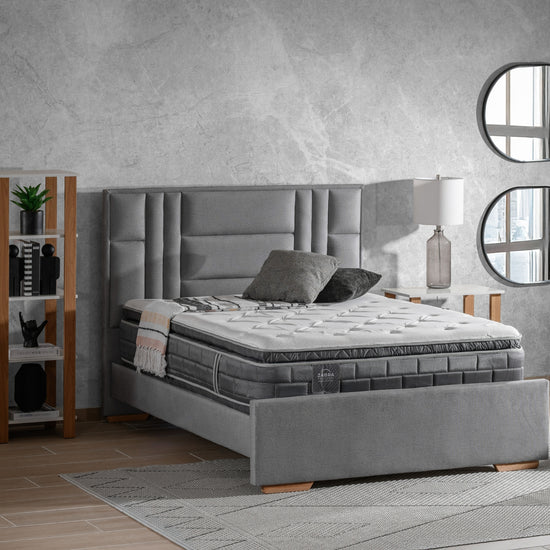 Disfruta noches de descanso inigualable con el Colchón Aurora Gris. Su Doble Pillow Top brinda suavidad envolvente, mientras la unidad resortada ofrece soporte ortopédico ideal para la columna. Elaborado con espuma de alta resistencia y un elegante diseño gris que combina confort, durabilidad y estilo.