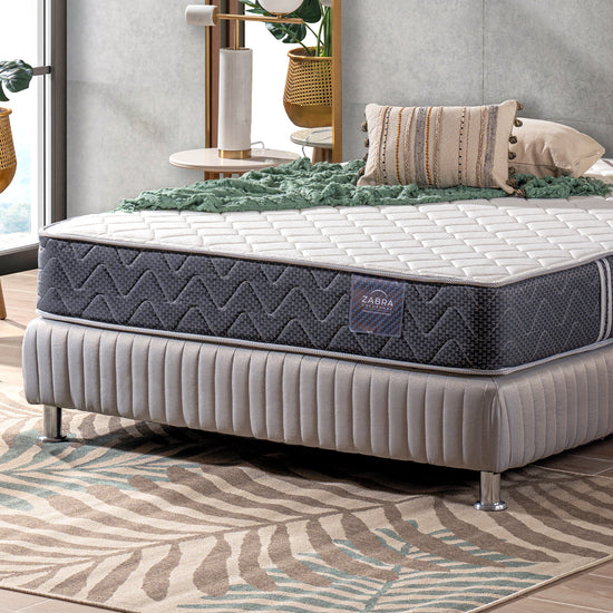 El Colchón Doble Berlin New Ortopédico Zabra cuenta con garantía de 9 años y está fabricado con espuma de alta resiliencia y acolchado anatómico, con una unidad central de espuma de 20 cm de grosor y densidad D23.