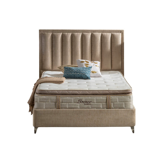 El Colchón Doble Bronce Zabra (Garantía 25 años) es doble ortopédico con diseño Euro-top en un lado (no reversible), revestido con espumas de alta densidad y telas de alta calidad.