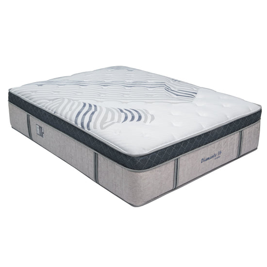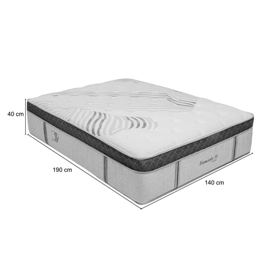 El Colchón Doble Diamante 75 Euro Top combina confort y durabilidad con su estructura de resortes Bonell, espuma de media densidad y tapizado en tela Jacquard. Brinda un descanso placentero con soporte uniforme y un diseño elegante que transforma tu habitación.