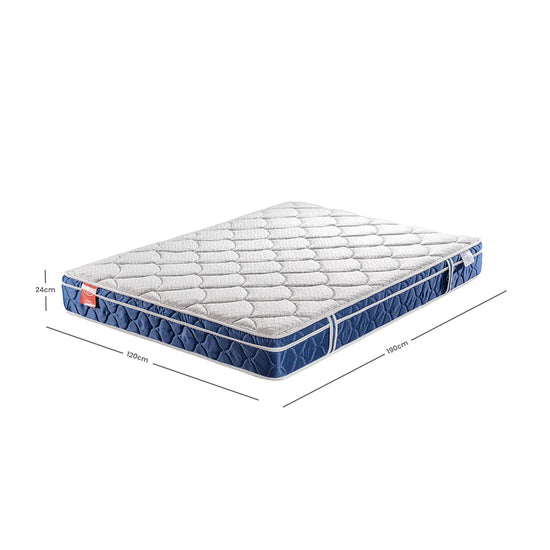 El Colchón Horizont soft, diseñado para ofrecer un descanso adaptable, cuenta con acolchado troquelado y espuma de alta densidad que brinda confort y frescura. Su tela en tejido de punto ofrece suavidad, diseño moderno en tonos azules. Altura 24 cm.