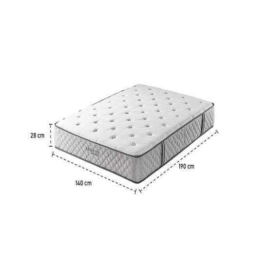 Colchón ortopédico resortado con sistema de amortiguación de 3 zonas, con mayor calibre en la zona central para un mejor nivel de soporte y durabilidad. Ideal para camas Doble.