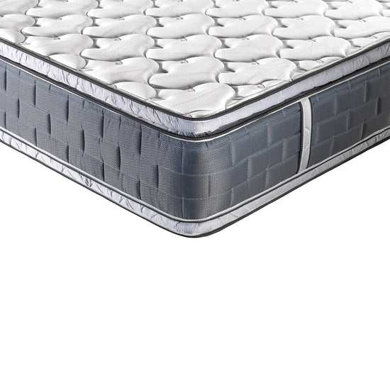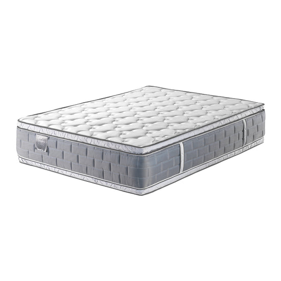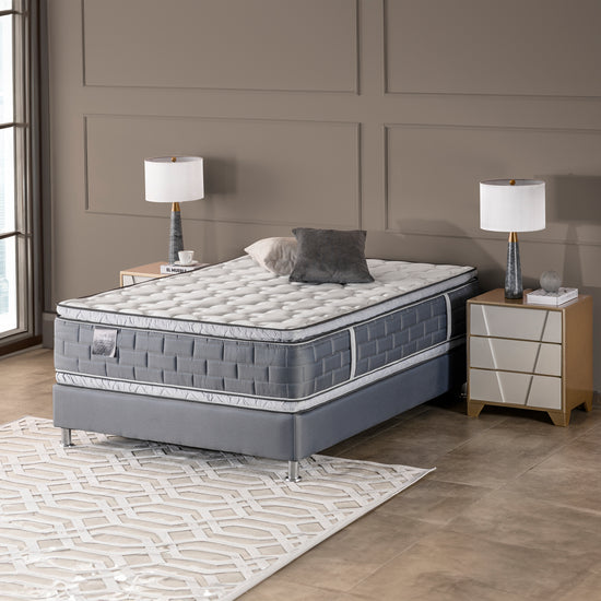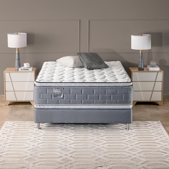 Este colchón ortopédico con resortes, estilo Euro Top en ambos lados, está reforzado con espumas de alta densidad que proporcionan un soporte excepcional para todo el cuerpo, asegurando comodidad y un descanso óptimo.