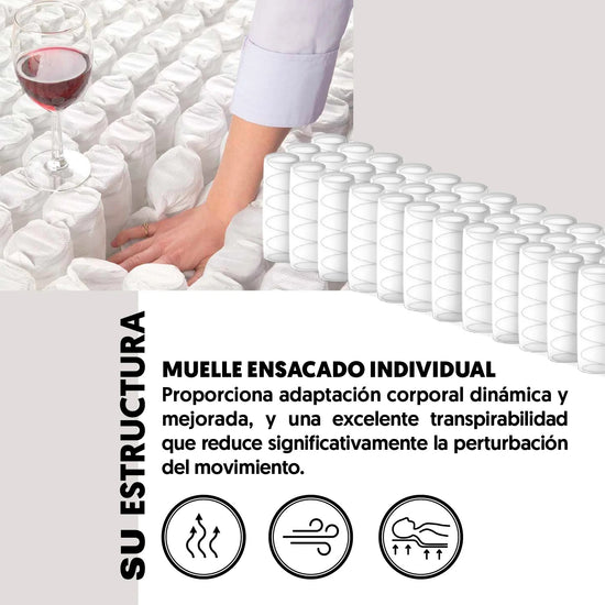 Colchón Doble con tecnología avanzada y confort de lujo: Diseñado para tu comodidad, es fácil de transportar y listo para usar en minutos gracias a su práctico formato enrollable. Sus resortes Pocket encapsulados se adaptan a tu cuerpo, aliviando presión, mientras el Eurotop acolchado ofrece suavidad envolvente. Su diseño minimiza la transferencia de movimiento, asegurando un descanso sin interrupciones, ideal para quienes comparten la cama. Fabricado con materiales de alta calidad, garantiza durabilidad y respaldo por 9 años.