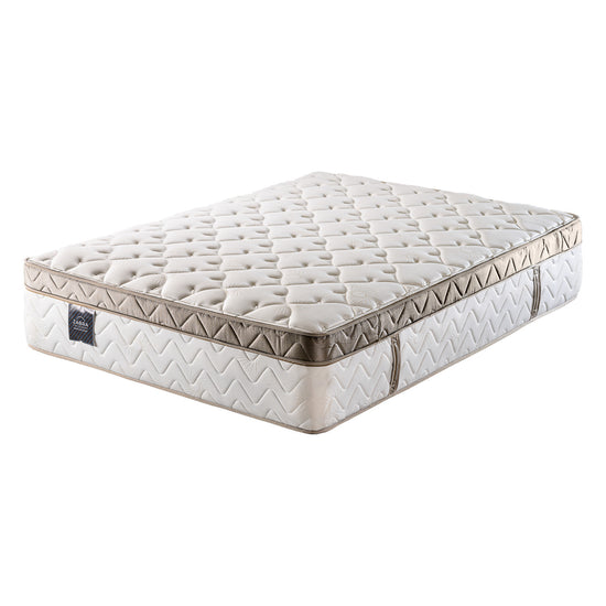 El Colchón King Armani ofrece un diseño resortado estilo Eurotop en un lado y láminas de espuma de alta resiliencia, garantizando un soporte excepcional para el cuerpo. Con una garantía de 10 años, proporciona confort y durabilidad para un descanso óptimo y prolongado.